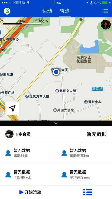 轨迹开启可记录此次运动线路、距离、时间、卡路里消耗等数据;