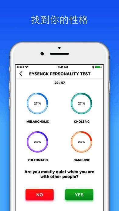 《心理测试》是一款专业的心理测试软件。通过这款软件。你可以更好的认识和了解自己,更加了解自己的心理情况。你可以做一系列的心理测试,例如颜色测试,由于测试,艾森克性格测试等,让你更加的了解自己。