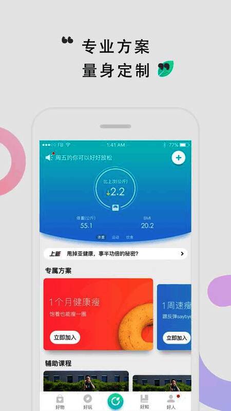 汇集海量健康数据,形成独有的大数据分析模型,为你匹配最适合身体需求的运动加饮食方案。