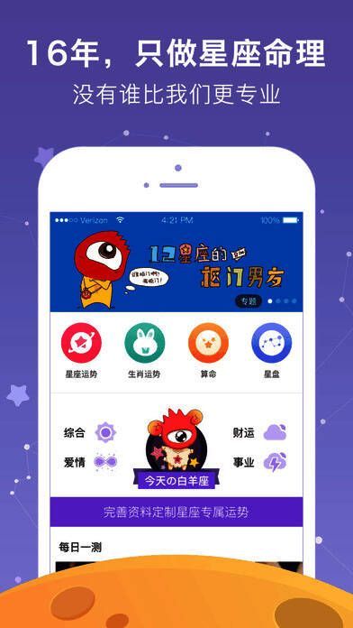 1、【星座运势】每日零时更新最新最权威星座运势,可定制专属星座运势,随时随地了解开运指南,把好运随身携带!