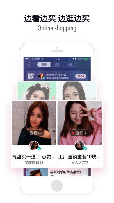 4、LIVE直播:蘑菇LIVE直播好玩儿到停不下来,网聚美女网红与超嫩小鲜肉!还能边看直播边逛街,与中国移动买手衣柜零距离接触。