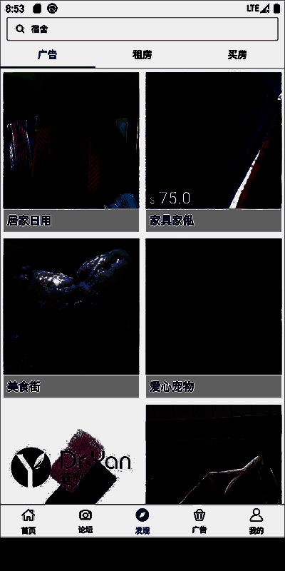 4、点击发现,这里有着广告、租房与买房的信息资源;