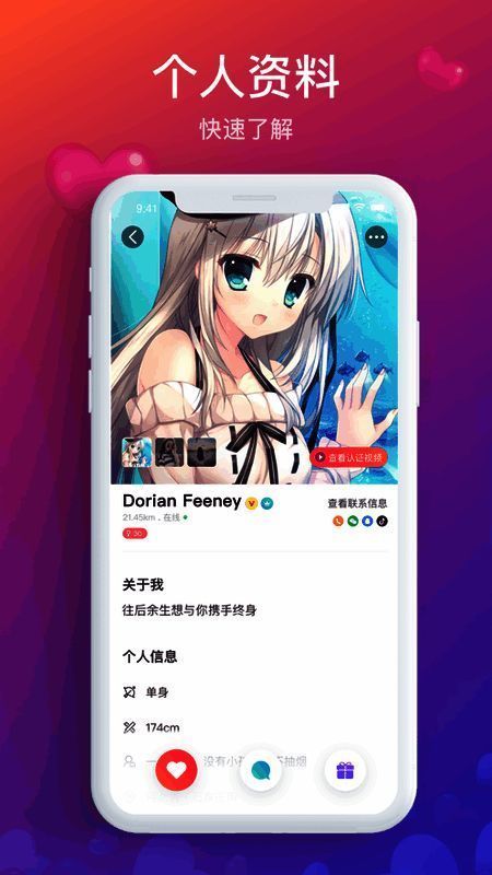 尓蒙APP是一款高颜值高效率随时随地都可线上互动聊天的脱单神器,主打附近人交友平台,开启定位功能,智能算法为你推荐最适合你距离你最近的那个TA。个性化背景自由编辑信息资料,强大标签可选择,视频语音线上聊天互动,分分钟脱单不成问题!赶快来下载体验吧!