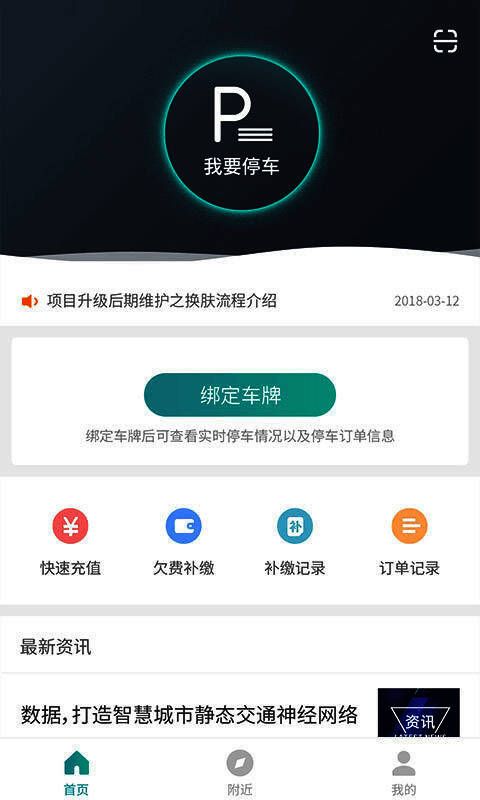 打开台州停车软件,进入软件首页,点击绑定车牌的图标;