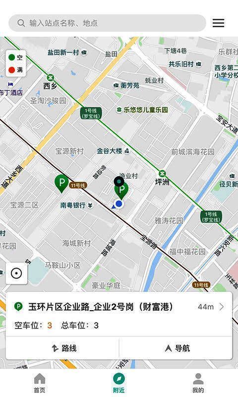 点击其中一个停车场,查看停车场位置和剩余停车位数量;