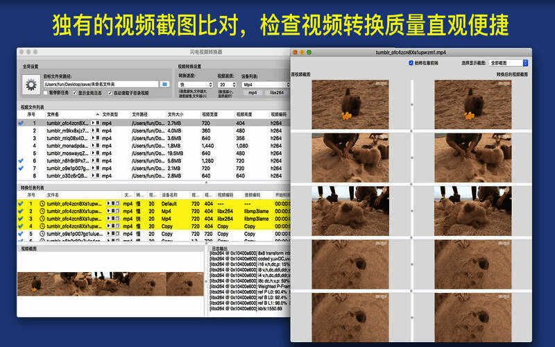3、独有的视频画质比较功能,能方便的比较视频转换前和转换后的视频截图,方便选择合适的压缩参数;