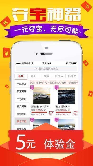 《一元夺宝vip版》是一款超好玩的一元购软件,超多最新最潮的优质商品,只需一元,就有可能获得,就是这么的刺激,也许你就是下一个幸运者,公平公正,满额即开,无需等待,喜欢的用户快来下载吧!