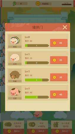 2、玩家可以用之前赚取的收益来扩大自己的猪圈,使自己的收益不断增加。