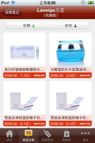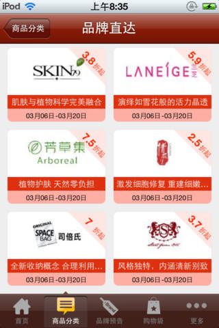 5、商品分类:品牌直达,让您直通钟爱品牌,各类商品折扣排序,让您方便快捷的买到更具性价比的商品。