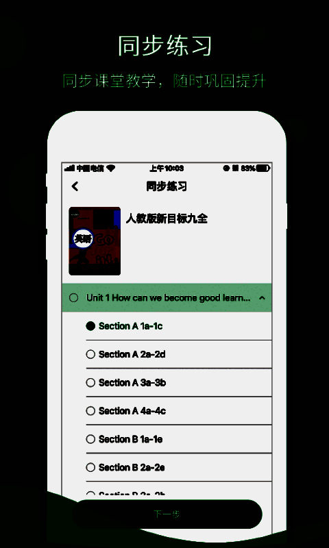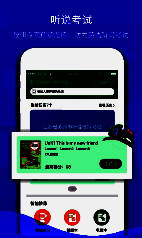 提分自学:同步练习、语音学习、听说测试、专项训练、专题项目、视听说、情景对话、口语作文等内容,让学生随时随地自由学习,全面提高英语综合素养和能力。