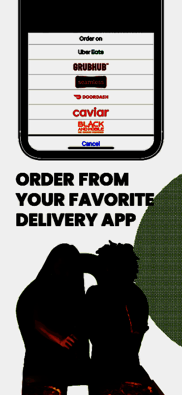 从你最喜欢的外卖应用程序订购,让食物送到你家门口,或者把餐馆收藏起来,以后再去探索。