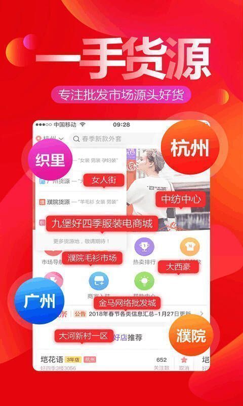 互联网+批发”电商平台,致力于将全国线下批发市场搬到网上,让有货源需求的客户在家就能逛遍全国批发市场,以一件代发、免费代理、零差价的方式向全国商家供货。