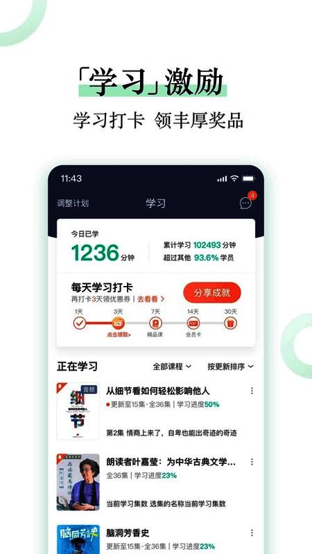 课程购买:可以选择和购买有价值的高质量课程,您可以随时随地使用手机学习。