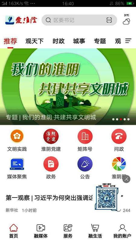3、整合淮阴新闻媒体资源,提供教育、医疗、金融、政务、娱乐等信息资源。