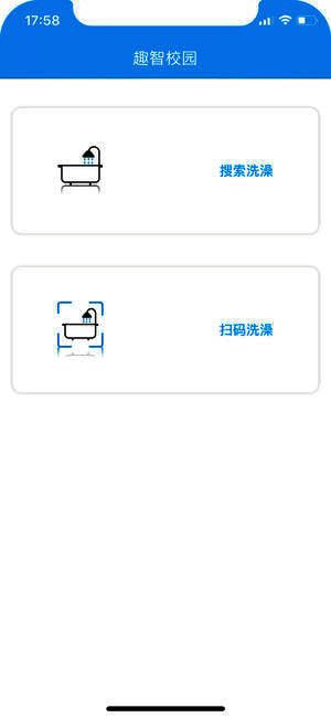 6、选择“洗澡”,使用APP扫描宿舍的洗澡设施二维码