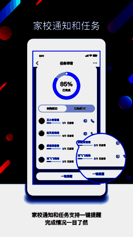 孩子通共有两个版本:“校园版”供幼儿园园长和老师使用;“家长版”供孩子家长使用。