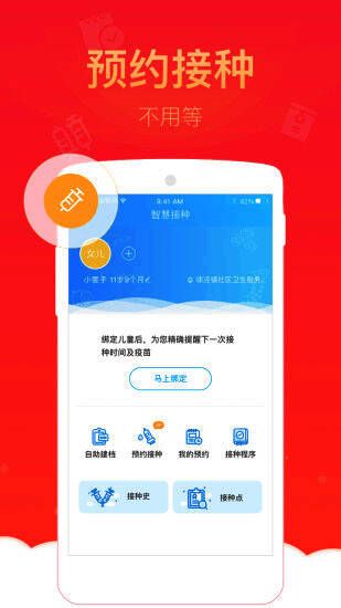 接种当天至现场快速取号,尊享健康云专属绿色通道。