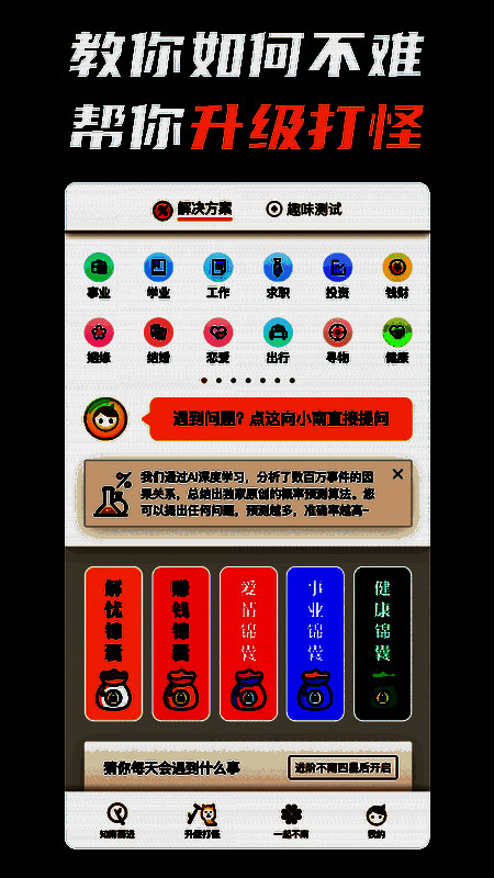 不南 ios版是一款时下十分火爆的人生职业规划辅助软件,让你能够在这里轻松找到人生方向。软件的初衷就是帮助广大迷惘中的年轻人,让大家能够准确的找到自己的目标,获得一份攻略,让你的人生不难!感兴趣的朋友快来下载吧!