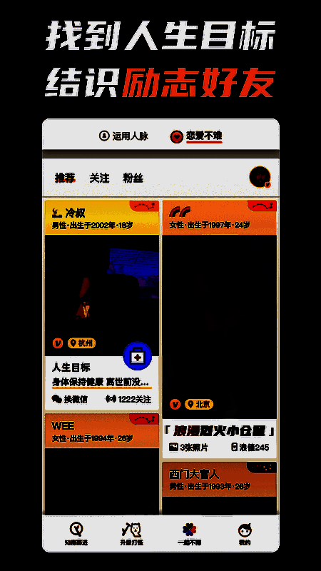 一款十分优秀的人生规划软件,让你从此刻开始不再迷惘,让你能够准确找到人生的方向。帮助你努力,让你养成良好的习惯,每天都在进步。这里还有很多励志好友,和他们结识,相互交流吧!
