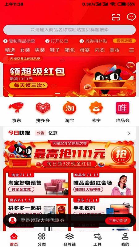 1、亿逛省钱利器,淘宝天猫、拼多多、京东大量优惠券免费领取。