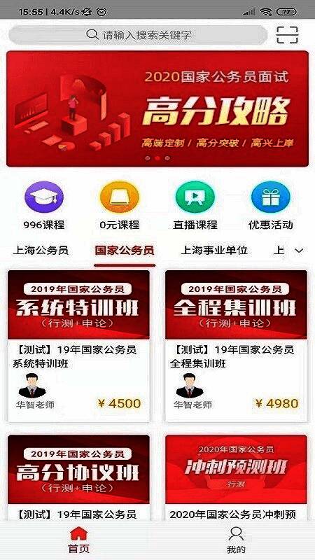 华智公考是一款考试的必备神器,这里能够帮助用户进行公务员的考试,涵盖了事业单位、警察、教师等领域的知识,便于用户选择并且进行学习,在线自行学习更简单,这里拥有大量的直播课程,线上移动式教学更轻松,能够代替线下的培训,还能节约大量的时间,赶快来下载体验吧!