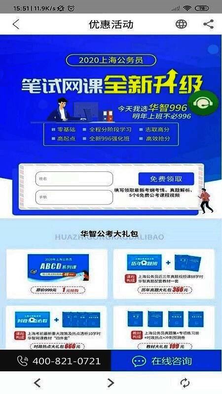 华智公考支持热线咨询,立即点击热线电话就可以进入咨询。