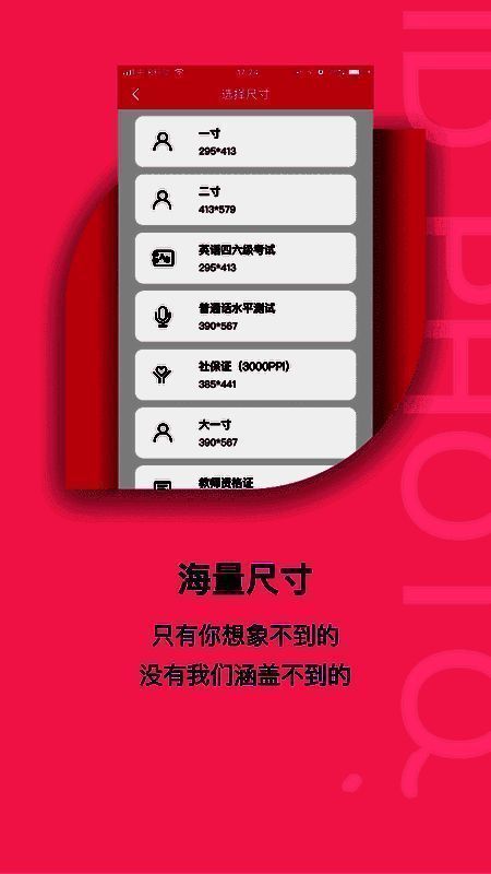 2、最齐全的证件照规格,一寸照、二寸照、身份证、宝宝证件照、学生证件照、工作证件照各国签证照。