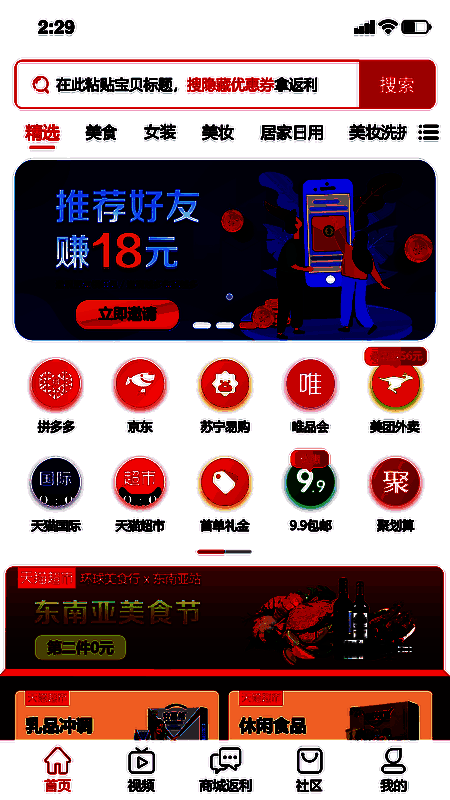 3、还有多类型的分类,电子、食品以及服饰和家居等等,安全,非常大的活动,购物便宜。