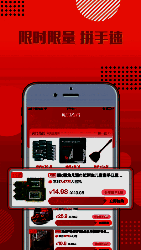 3、每天不同时段抢特价商品,享受额外,支付便捷有保障,多买还多送;