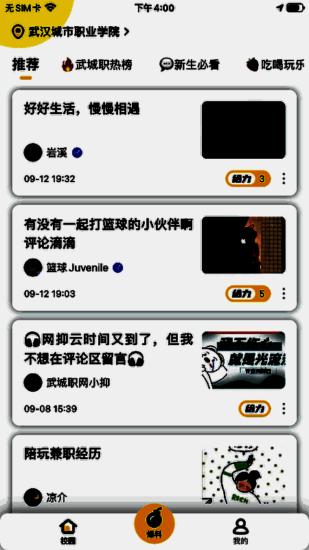 3、了解学生的真实需求,实现创意、寻找共鸣,努力打造极富价值的大学生资讯平台。