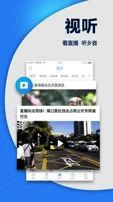 全面、及时地聚合分发海南本地新闻,及时推送海南重大消息、突发新闻。用户可根据兴趣、区域定制不同专属频道。