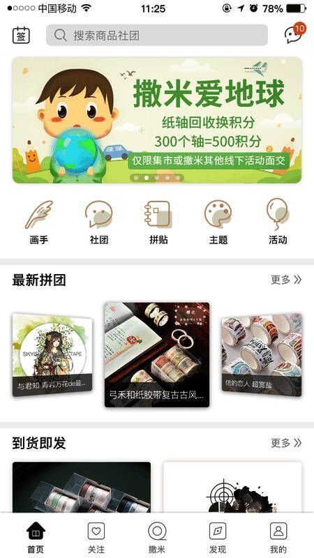 撒米app是一款专为手帐爱好者、画师、社团、团长等人群提供的定制化服务的手帐生活软件,是集拼米拼卷、拼贴分享、原创扶持、手帐周边、手帐集市服务、手帐日记等多功能化为一体的手帐文化服务平台。同时在这里会实时为用户提供推送最新拼团的信息,用户可以自由选择参与,加入拼团后即可轻松优惠选购心仪商品。另外,用户在撒米中购买还可以获得积分奖励,自己的积分可以兑换相应的福利优惠,非常的实惠,这样就能更好的帮助用户实现自己的手帐文化服务,欢迎有兴趣的用户们免费下载体验。