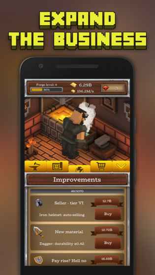 《放置商业大亨》是一款非常不错的模拟经营类游戏,像素风格的游戏设计,给人一种怀旧的感觉,简单的放置玩法,轻松有趣的点击方式来打造不同的武器和装备,赚取更多的金币来打造属于你的商业帝国!