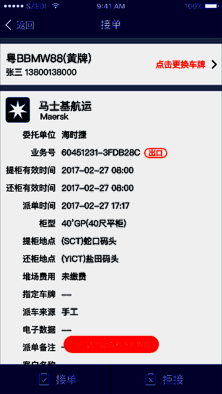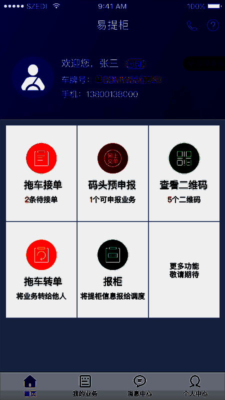 客户可以在本应用上接取订单,接取物流订单,进行业务操作;