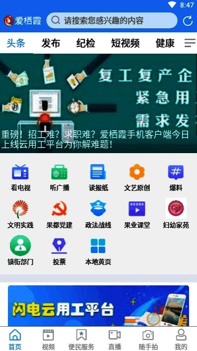 拥有丰富的政务、生活、新闻服务功能,可以看电视、听广播了解最快最新最全的栖霞资讯。