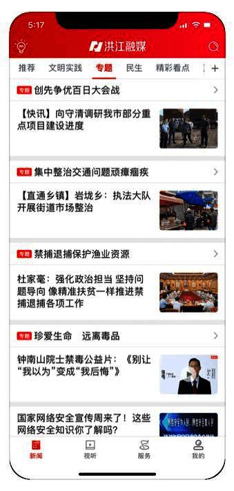 2、打造了丰富多样的新闻专题,涵盖了民生、精彩看点以及文明实践等多种内容;