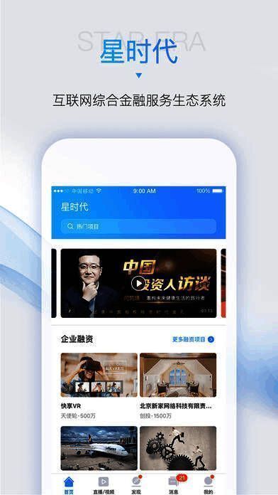 3、星时代通过直播与创投连接,打破固有模式,重新定义社交,可以让用户在直播中建立更广泛的人脉和圈子,在创业者、投资人、企业家和富裕人群之间建立起高效、高质、高频的联系;同时通过直播,聚集大量青年创客和青年投资人、领先的直播体验,使其亲历创投圈最前沿;