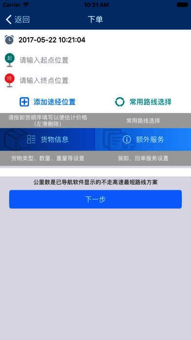 3、用户通过APP一键发布订单、快速配送货物;