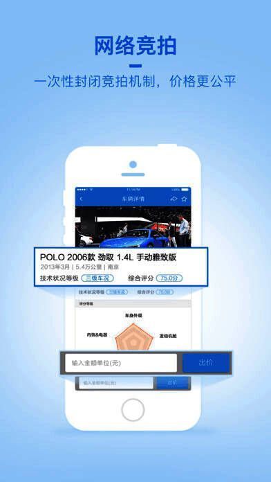 2、通过移动数据网络,随时随地参与竞拍,买下您中意的二手车;