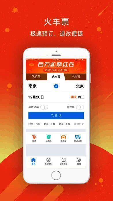 4、【火车票】火车票订票,抢票,支持12306网站购票;