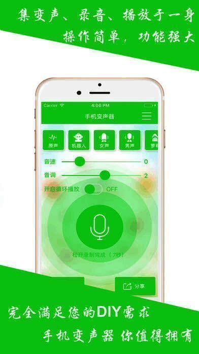 手机变声器是一款支持微信、QQ变声以及各种声音效果变化的声音处理软件,包含系统预定义的汤姆猫、男声、女声、老人、机器人、萝莉等效果,还支持用户自定义切换各种声音效果,并可以通过QQ、微博、微信等方式将变声后的音频分享,更重要的是它支持通过微信语音发送变声后的声音。