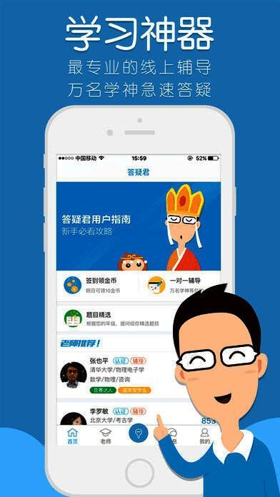 答疑君,能给你的远不止作业答案,更有家教经验丰富的学霸学长给你详细讲题,帮你真正提高成绩。遇到不会的题、做错的题,一键拍照发问,片刻就有顶尖大学学长为你答疑解惑!我们提供全部九个科目的辅导和学习方法指导,足不出户享受最全面的家教服务。每天签到就能免费提问,从此问题不过夜!提高成绩,从解决疑惑开始。