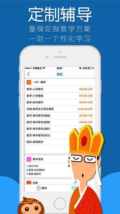 名牌重点大学的学生一对一专业辅导作业,清华大学,北京大学,浙江大学、南京大学、复旦大学、南开大学、厦门大学...全国各地名校学霸云集,全科目攻破,语文、数学、英语、物理、化学、地理、生物、历史、政治等,免费一键拍照搜题提问咨询,学长们快速回复答案!联系学霸,手机、微信、QQ,更能和学霸做朋友,瞬间提升bigger!名校大学生和在校老师还能在线申请成为私人家教,帮助学弟学妹解难题,轻松拿外快;