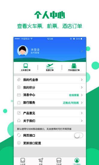 1、随时随地购买火车票、退票、改签;
