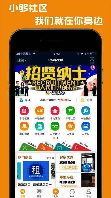 小够社区专注于中小城市便民信息发布和交流,覆盖国内500个中小城市,我们提供求职招聘,出租求租,拼车出行,公益求助,二手转让,实惠自己也方便大家。