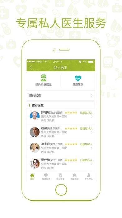 4、如果您签约了自己的家庭医生,医生还会根据您的健康情况为您每周或每月提供衣食住行等方面的健康建议,并为您提供极具参考价值的年度健康分析报告