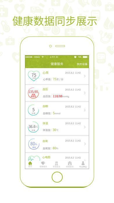 3、您还可以使用互联网医院App,接入各类智能可穿戴设备和身体测量仪器,把您每天的身体健康情况记录下来,医生便可时刻关注您的健康。