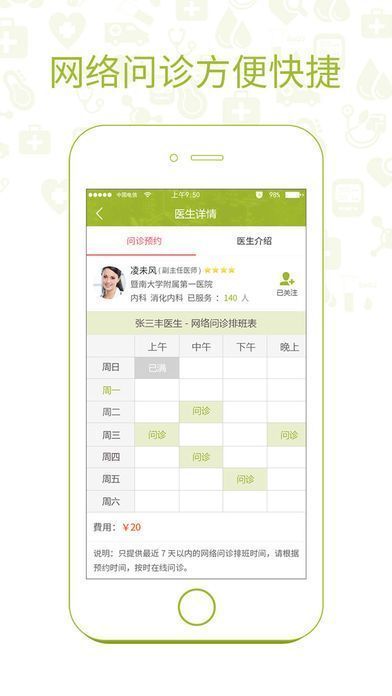 2、通过它,您可进行一次性付费的网络问诊服务,或者签约更贴心的家庭医生,为您提供便捷的线上问诊咨询、上门看病服务。
