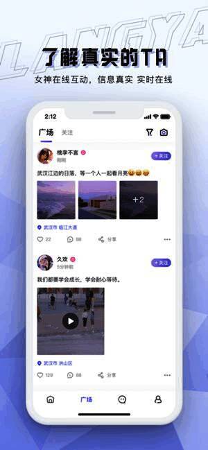 1、浪呀是一款年轻人都在玩的真实可靠的交友工具,在这里人脸认证确保用户真实性;
