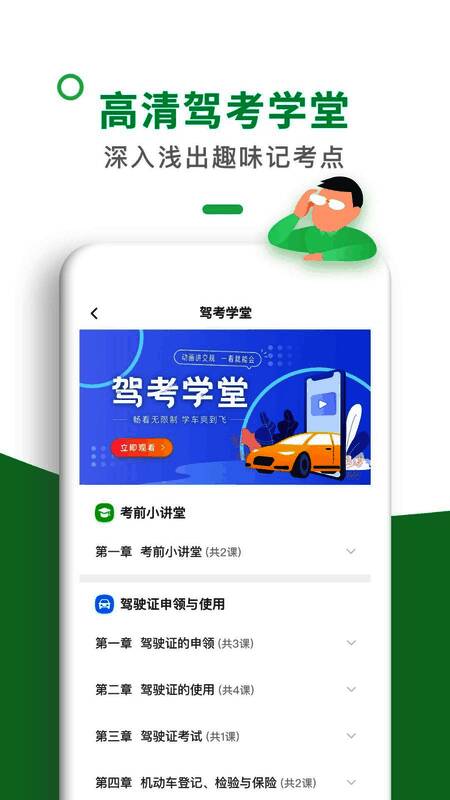 驾考一点通是属于你的掌上驾考学习软件,可以让你学习科目一到科目四所有的考试内容,通过图文和视频介绍,让你更容易上手,是你不可放弃的驾考学习软件。